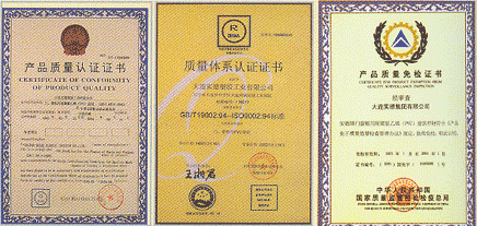 國(guó)際ISO9001認(rèn)證、中國(guó)產(chǎn)品質(zhì)量免檢證書