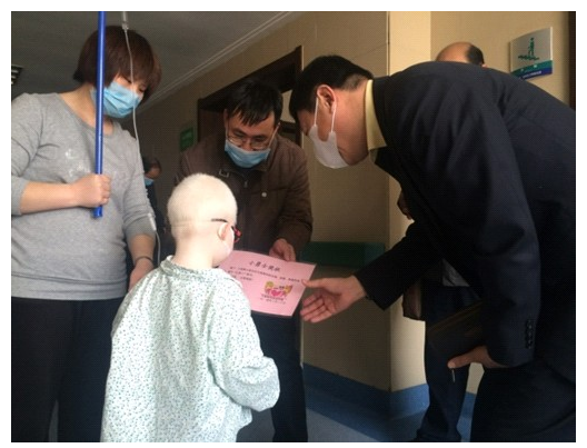 王總首先轉(zhuǎn)達(dá)了徐斌董事長、楊寶善書記以及集團(tuán)全體同事對小成維及他們一家的關(guān)心與祝福,并鼓勵小成維要勇敢、堅強(qiáng)地戰(zhàn)勝病魔,希望他早日康復(fù)。
